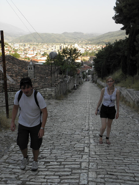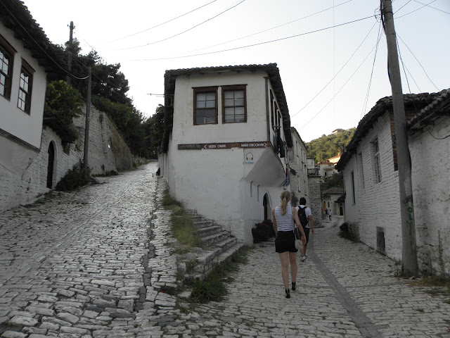 Albanien verbergt aber auch wunderschöne Sehenswürdigkeiten. Im Süden des Landes machen wir einen Stopp in Berat. Unser Hostel befindet sich in einem Gebäude aus dem XVII Jahrhundert, das während der Herrschaft des letzten albanischen Königs, Zogu I, im Besitz des Innenministers war. Das Haus besteht hauptsächlich aus Holz. Dicke Wände schützen vor der sommerlichen Hitze.