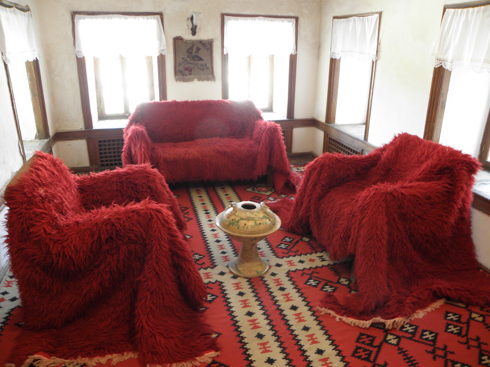 Wir besuchen das Haus von Kadare, eines berühmten, gegenwärtigen albanischen Schriftstellers. Hilfreiche Einwohner helfen uns es zu finden, da es nicht gekennzeichnet ist. Dann begeben wir uns zum Ethnografischen Museum, das auch das Geburtshaus des albanischen Diktators ist. Zur Zeit des Kommunismus hat es das Museum des Kampfes und der Revolution beherbergt, welches hauptsächlich der Person Hoxha gewidmet war. Heute kann man dort den Innenraum eines altalbanischen Hauses einer wohlhabenden Familie bestaunen. Die Ausstellung besteht hauptsächlich aus Gegenständen des täglichen Bedarfs. Die nächste, noch prachtvollere Sehenswürdigkeit dieser Art auf unserem Weg ist das Haus Zekate, das ein sehr gutes Beispiel für albanische Baukunst ist. Es sieht aus wie ein kleines Berghaus, das auf die Spitze eines riesigen Turms gesetzt wurde. Von oben ruft uns der gastfreundliche Eigentümer. Nachdem wir seinen Garten passieren, gelangen wir ins Innere des Hauses. Dort informiert uns ein Zettel über den kostenpflichtigen Eintritt. Wir haben das schattige Haus eine Weile lang für uns alleine.