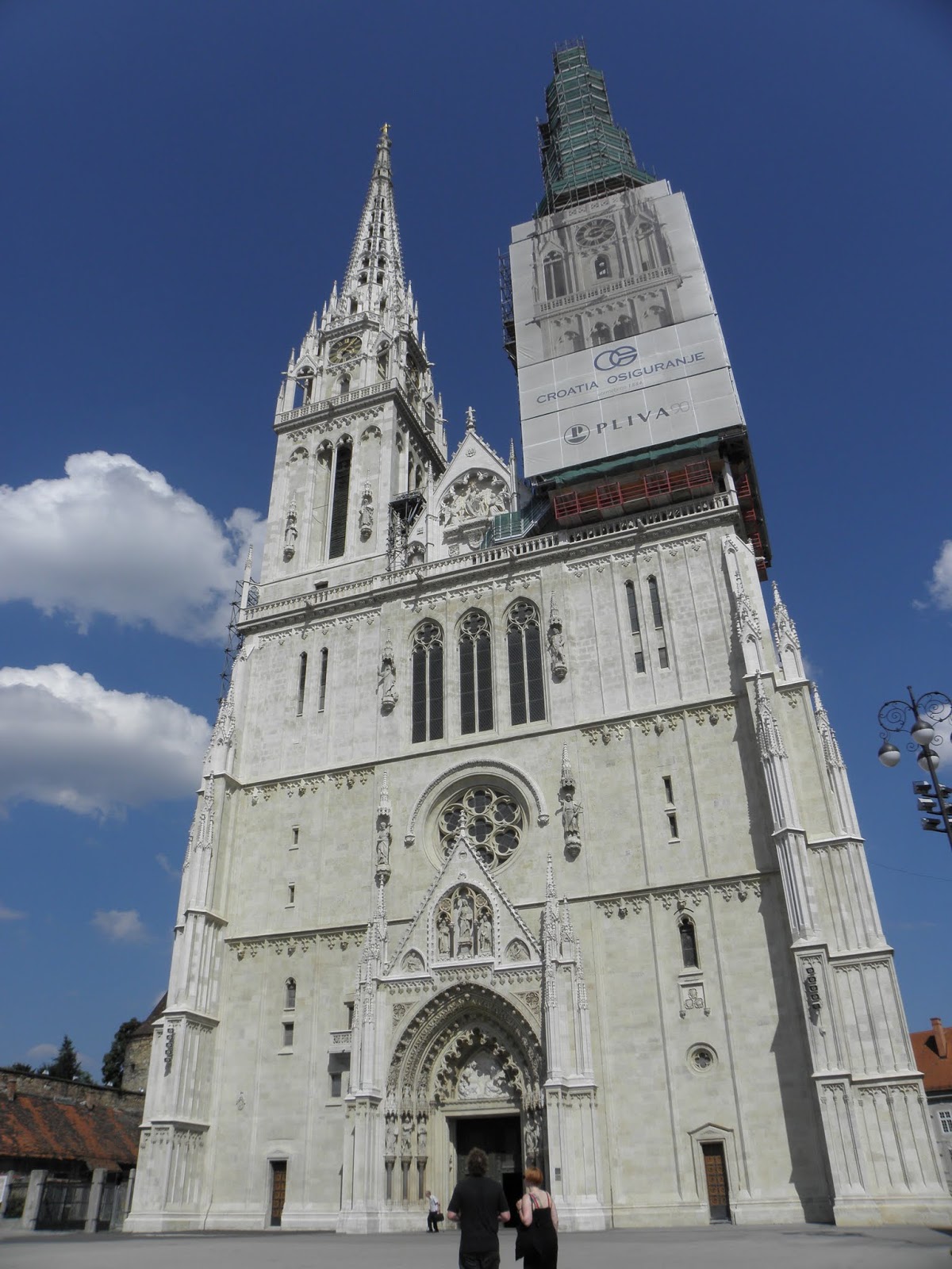 Wir verlassen die Unterstadt und begeben uns rechts zur zagreber Kathedrale aus dem XIII Jahrhundert. In der Nachmittagssonne laufen wir durch die Straßen der Oberstadt. Es herrscht eine magische Stille, die Umgebung ist wie ausgestorben, es gibt weder Touristen noch Einheimische. Die Fensterläden der Häuser sind alle geschlossen. Die Einwohner verstecken sich vor der unausstehlichen Hitze. Wir erklimmen eine steile Treppe, die uns zum Wahrzeichen dieser Stadt führt - der St.-Markus-Kirche. Genauer gesagt ist das Wahrzeichen das wunderschöne, himmlisch bunte Dach der Kirche, dessen Dachziegel die Form des kroatischen Wappens einnehmen. Wir kommen zum Lotrščak-Turm, von wo wir das Stadtpanorama bewundern. Hier kommt auch aus der Unterstadt (genauer aus der Tomičeva Straße) die alle 10 Minuten verkehrende Standseilbahn, die aus dem XIX Jahrhundert stammt, an. Diese ähnelt der Seilbahn in Budapest. Dank ihr kann man sich den anstrengenden Weg über die steile Treppe ersparen. Wir begeben uns nach unten über die Strossmayer-Promenade und kommen zur Unterstadt zurück. Auf dem Weg zum Hostel sehen wir das Kroatische Nationaltheater, das Mimara-Museum und die Nationalbibliothek mit reizenden Eulenstatuen auf dem Dach.In Zagreb befinden sich ziemlich viele interessante Museen, wie z. B. das oben erwähnte Mimara-Museum, das eine riesige Kollektion von Gemälden beherbegt, oder das Museum für Naive Kunst, das wir aus Zeitnot nicht besuchen konnten. Das Museum ist an Wochenenden bis 13 Uhr geöffnet.
